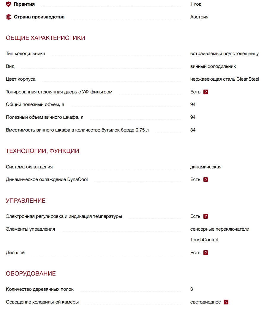 Емкость винного шкафа (в бутылках 0,75 л.) |