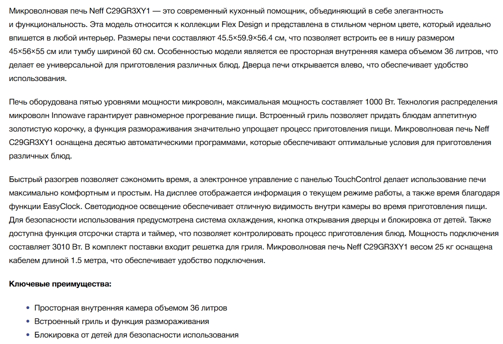 Встраиваемая микроволновая печь NEFF (Нефф) C29GR3XY1