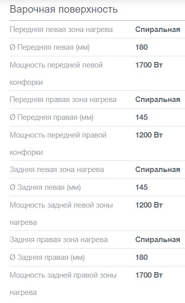 Число электрических конфорок |