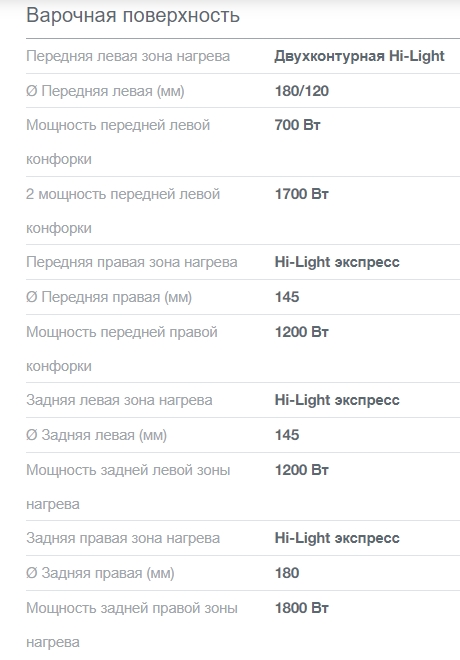 Число электрических конфорок |