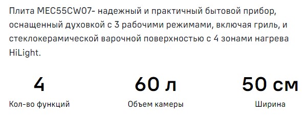 Электрическая плита MAUNFELD (Маунфилд) MEC55CW07