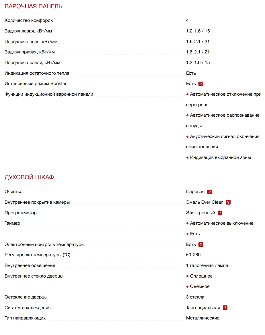 Число индукционных конфорок |