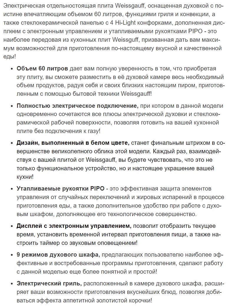 Электрическая плита Weissgauff (Вайсгауф) WES E12V15 WE