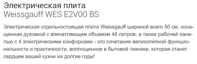 Электрическая плита Weissgauff (Вайсгауф) WES E2V00 BS