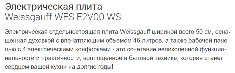 Электрическая плита Weissgauff (Вайсгауф) WES E2V00 WS