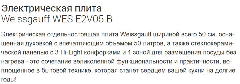 Электрическая плита Weissgauff (Вайсгауф) WES E2V05 B