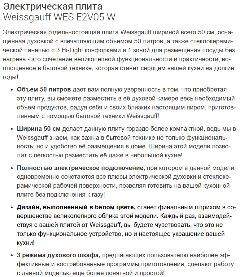 Электрическая плита Weissgauff (Вайсгауф) WES E2V05 W