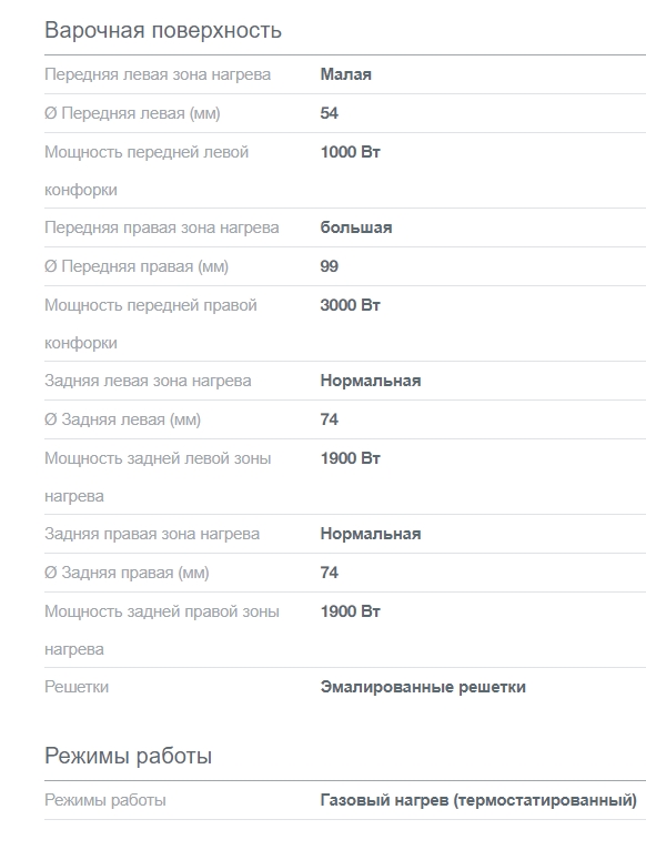 Число газовых конфорок |