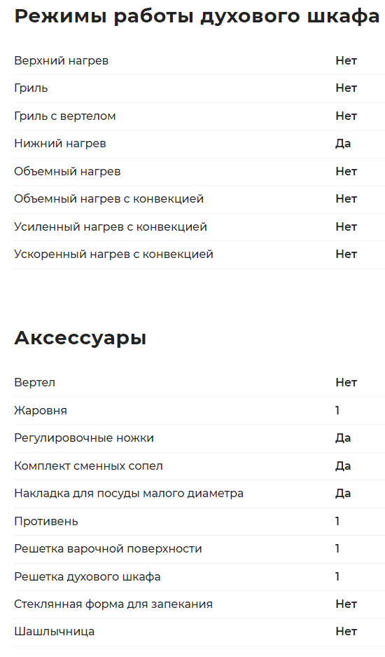 Объём духовки |