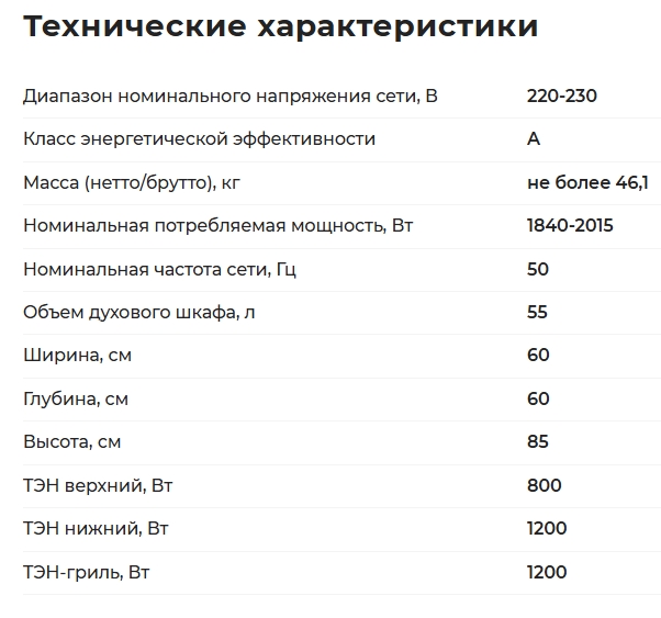 Объём духовки |