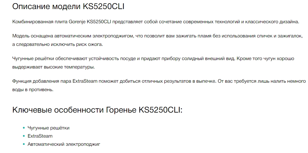 Комбинированная плита Gorenje (Горенье) KS5250CLI