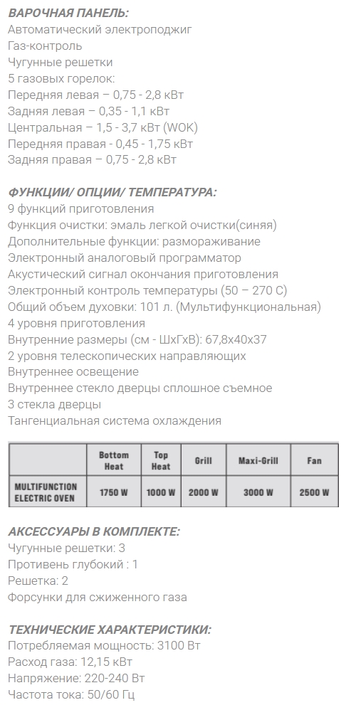 Максимальная температура духовки |