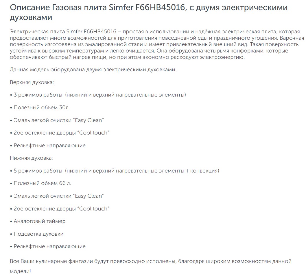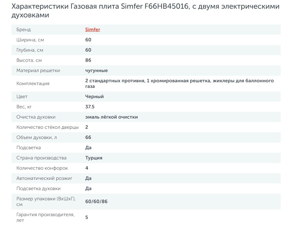 Комбинированная плита Simfer (Симфер) F66HB45016