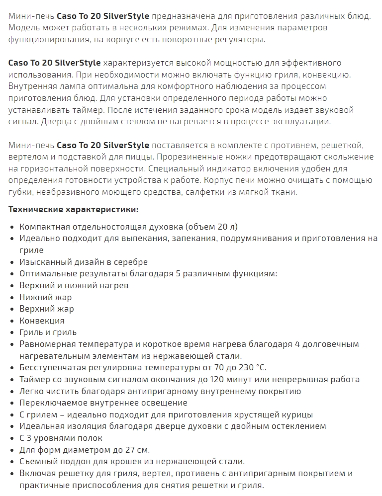 Мини-печь Caso (Касо) TO 20 SilverStyle