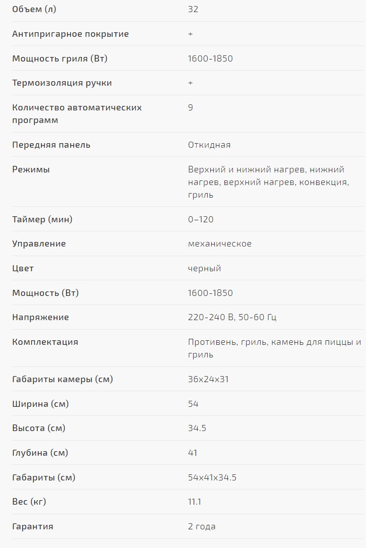 Объем духовки |