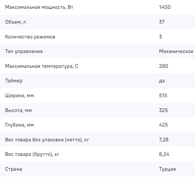 Максимальная температура духовки |
