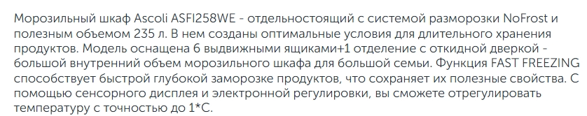 Морозильная камера Ascoli (Асколи) ASFI258WE