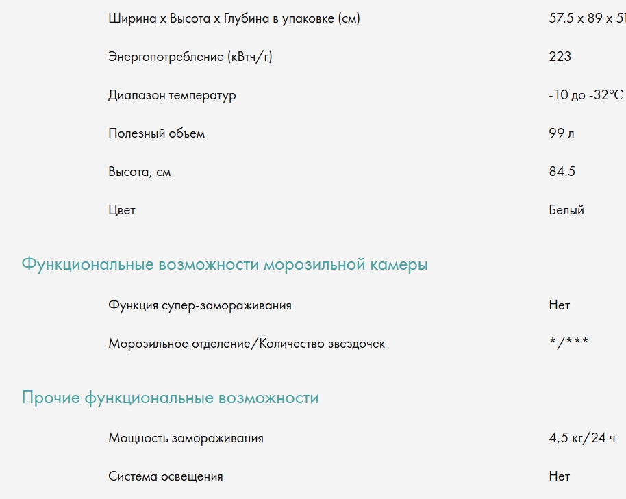 Объем морозильной камеры |