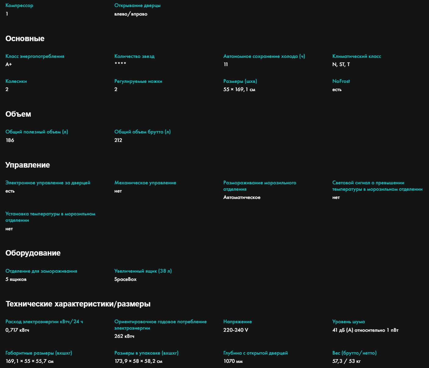 169.1x55x55.7 см |