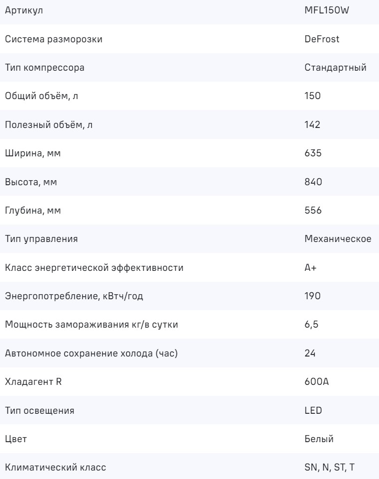 Морозильная камера MAUNFELD (Маунфилд) MFL150W