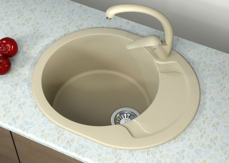 Овальная кухонная мойка с одной круглой чашей с небольшим крылом, оборачиваемая