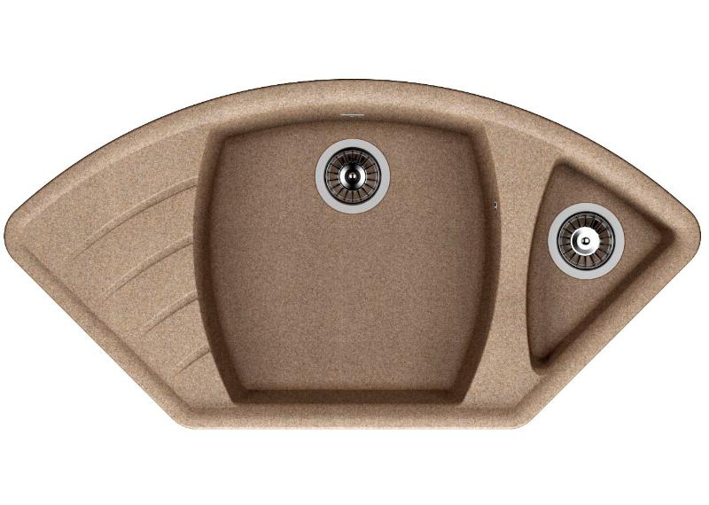 Трапецевидная кухонная мойка с двумя чашами и крылом