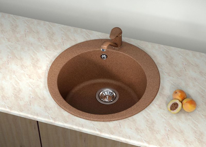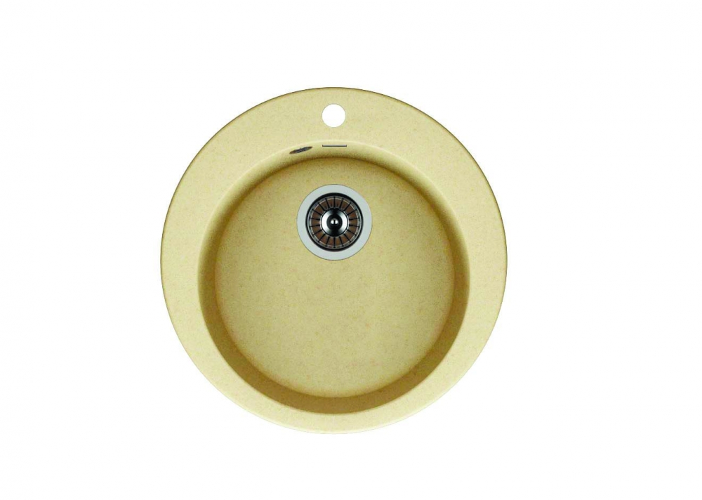 Круглая кухонная мойка с одной круглой чашей (отверстие под смеситель уже изготовлено на заводе)