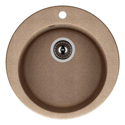 Круглая кухонная мойка с одной круглой чашей (отверстие под смеситель уже изготовлено на заводе)