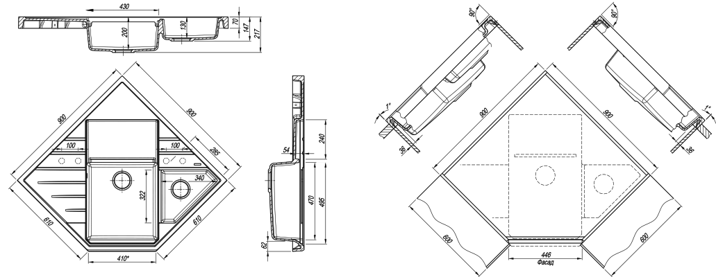 Кухонный блок, мм. 900