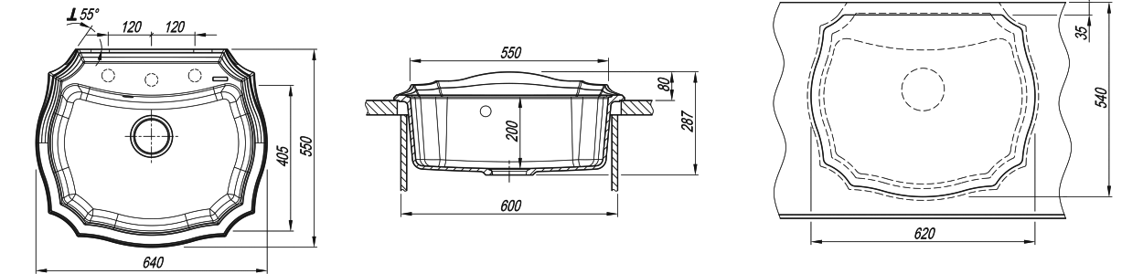 Функциональная мойка с большой чашей;Плавные, изящные линии;Мойка устанавливается задним бортом вплотную к кухонному фартуку/стене.