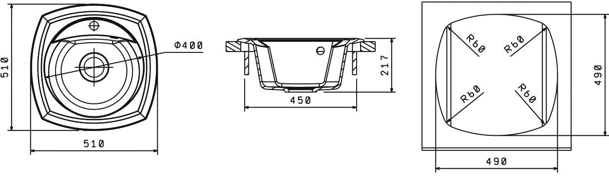 Графичная мойка, обрамленная рельефным бортом;Прекрасно подойдет для малогабаритной кухни.