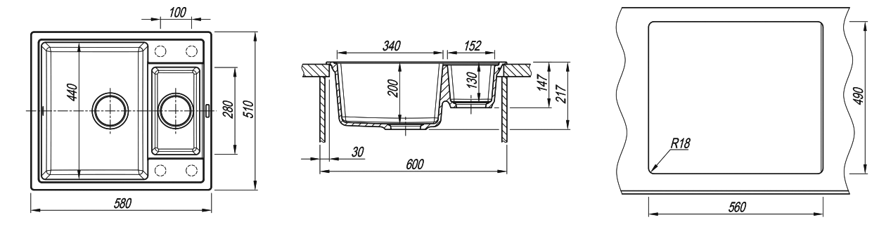 Современная мойка с малой чашей;Практичный размер мойки;Модель оборачиваемая;
