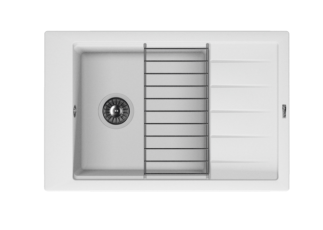 Мойка с просторной чашей и плоским крылом;В комплект входит решетка из нержавеющей стали;Модель оборачиваемая.