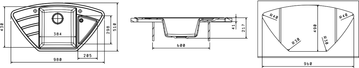 Угловая мойка с четкими контурами;Гармоничный дизайн;Дополнительные отверстия под аксессуары.