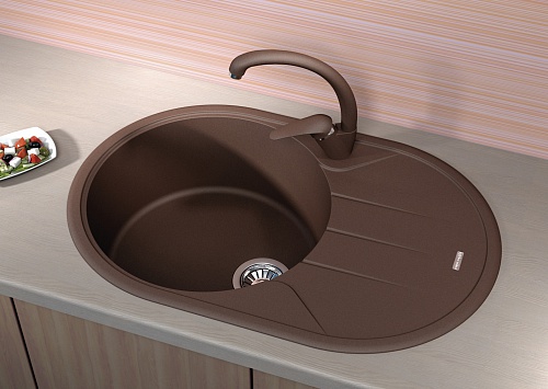 Классическая круглая мойка с большим крылом;Просторная чаша;Модель оборачиваемая.