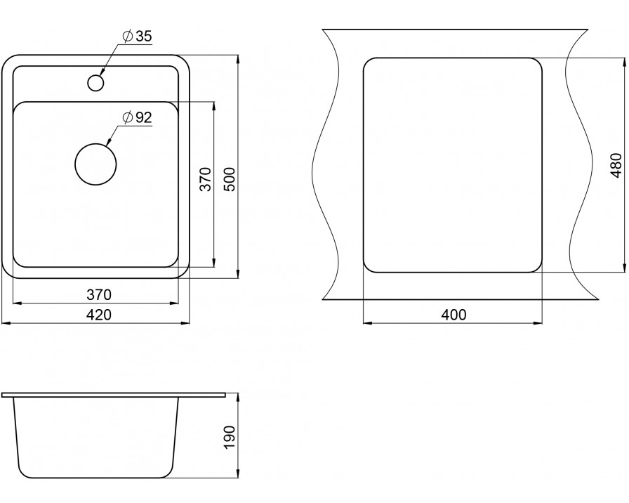 | Конструкция | Односекционная квадратная мойка с отверстием под смеситель |