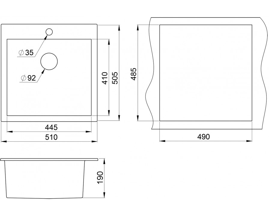 | Конструкция | Односекционная квадратная кухонная мойка |