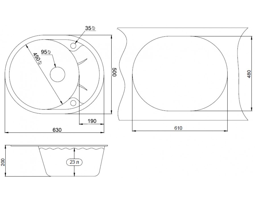 | Размер чаши мойки, мм | Диаметр 450 |