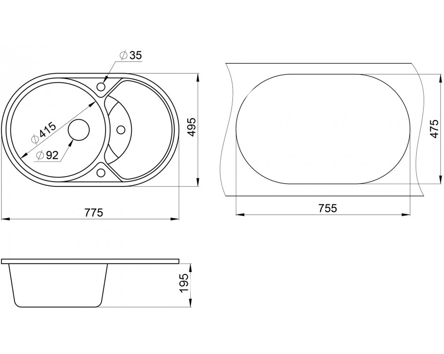 | Размер чаши мойки, мм | Диаметр 415 |