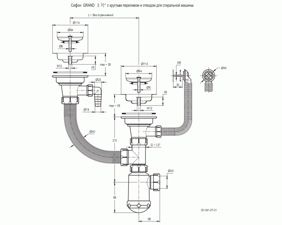 | Комплектация | Клапан 3 1/2 дюйма, сифон (смотрите схему в приложенных изображениях), крепеж (герметик), инструкция по установке, гарантийный талон |