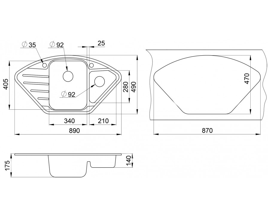 | Глубина чаши мойки, мм | 175, 140 |