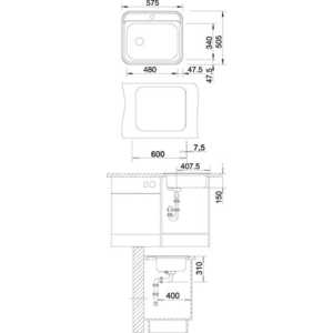 - Размер монтажного отверстия под мойку (ШхГ) 55.7x48.7 см