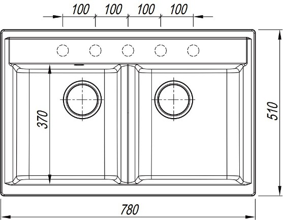 Прямоугольная кухонная мойка с двумя большими чашами.