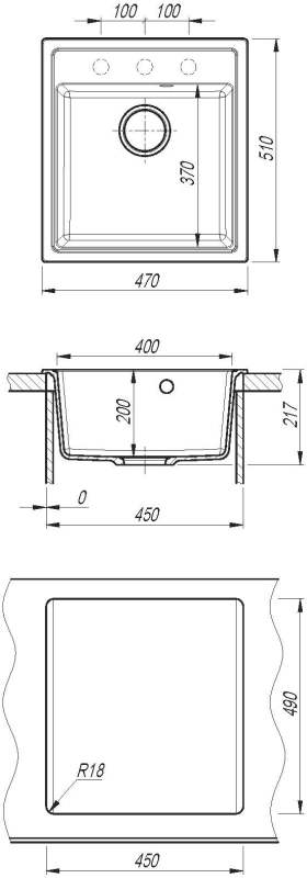Компактная мойка с вместительной чашей и отверстием под аксессуары (отверстия уже изготовлены на заводе)