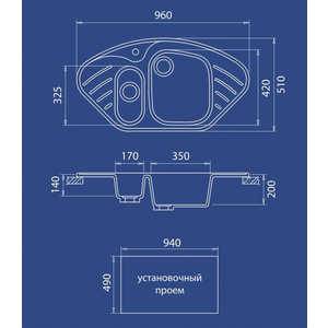 Кухонная мойка GranFest (Гранфест) гранит угловая 960x510