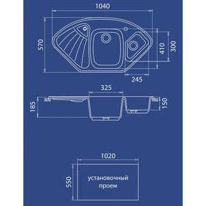 Кухонная мойка GranFest (Гранфест) гранит угловая 1040x570 Песочный
