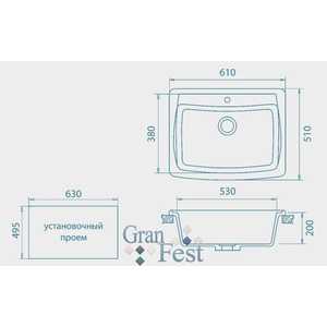 Кухонная мойка GranFest (Гранфест) гранит 605x510