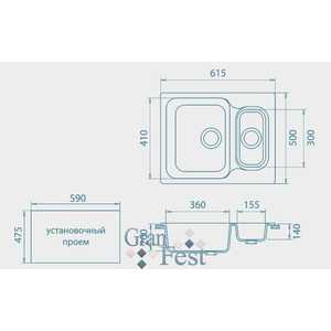 Кухонная мойка GranFest (Гранфест) гранит 615x500
