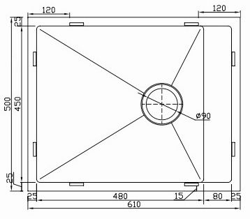 Размеры мойки: 610*500 мм.