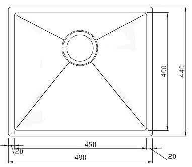 Размеры мойки: 490*440 мм.